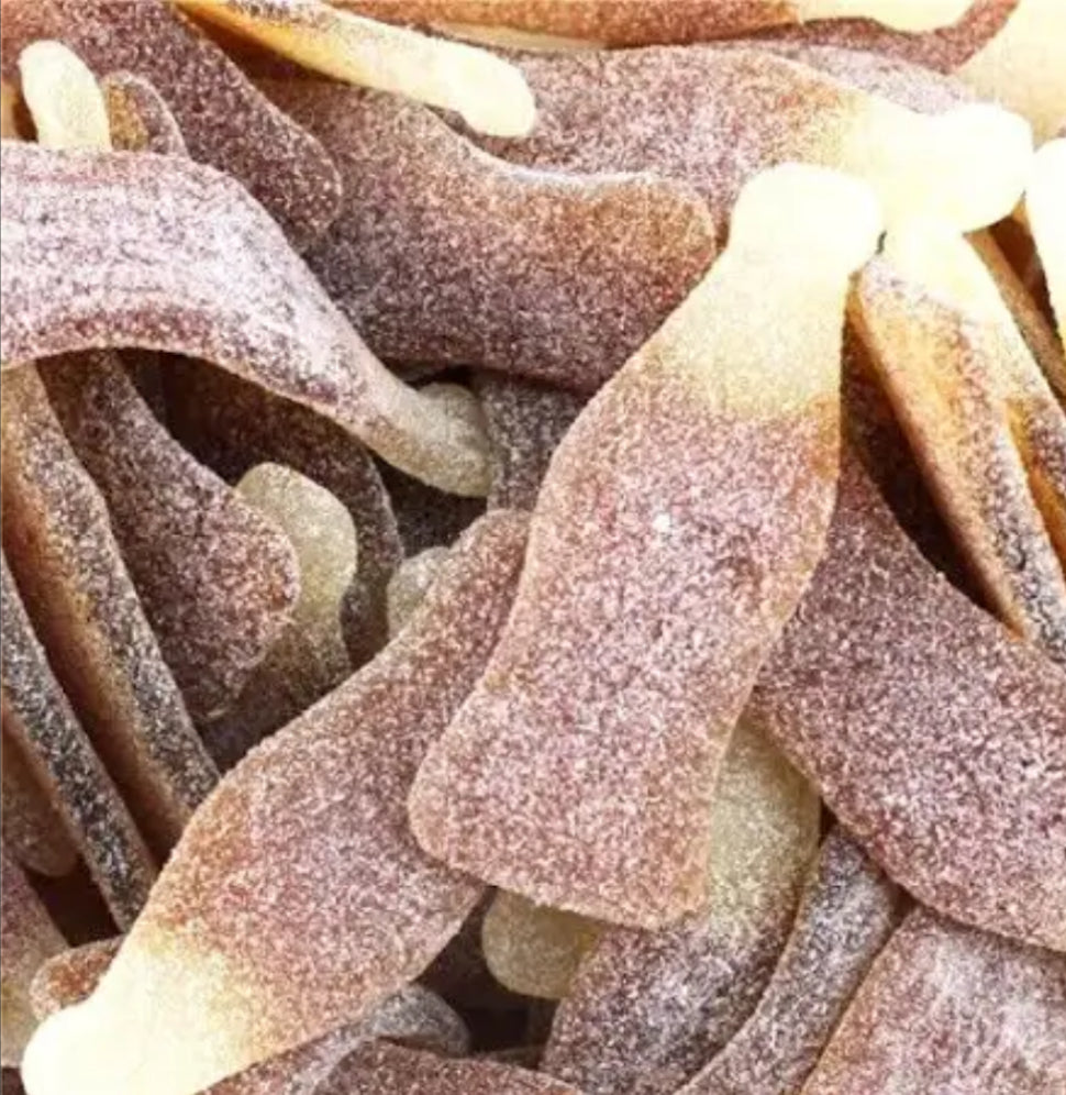 Giant Fizzy Cola Bottles provide a mouth-watering experience with their deliciously fizzy texture and authentic cola flavor.